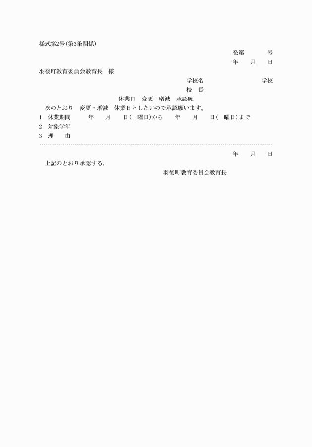 2 管理規則第二条の二第二項による休業日の変更又は増減の申請は、様式第二号によるものとする。