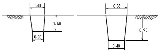 乙止水栓・散水栓用掘削断面は2の(2)に同じとする。
